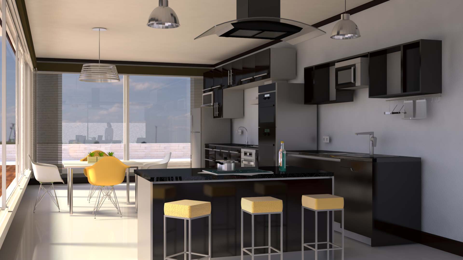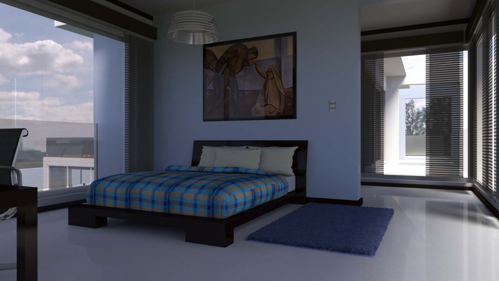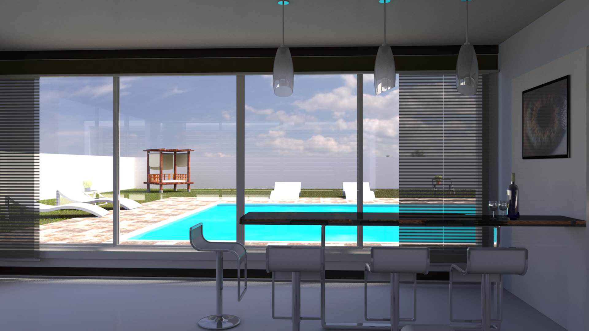Diseño y producción de render para mostrar como ejemplo la iluminación natural que se obtiene a partir de colocar una unidad de doble acristalamiento compuesta por un vidrio Low-e Súper neutral 68 sujeto con una canceleria robusta con acabado color blanco. INTERIORES
