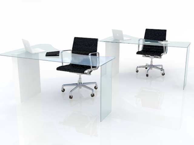 Escritorio individual fabricado con vidrio templado 9mm y herrajes de acero inoxidable tipo "pipa" y antiderrapantes opcionales.